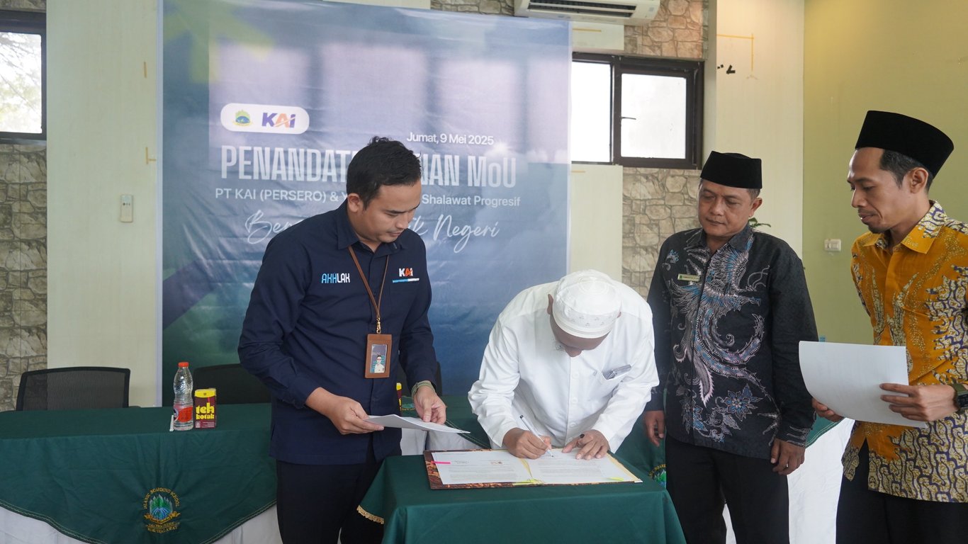 Perjanjian Kerjasama ini ditandangani oleh Ketua Yayasan Bumi Shalawat Progresif, KH. Aria Muchammad dan Executive Vice President KAI Daop 8 Surabaya, Wisnu Pramudyo.